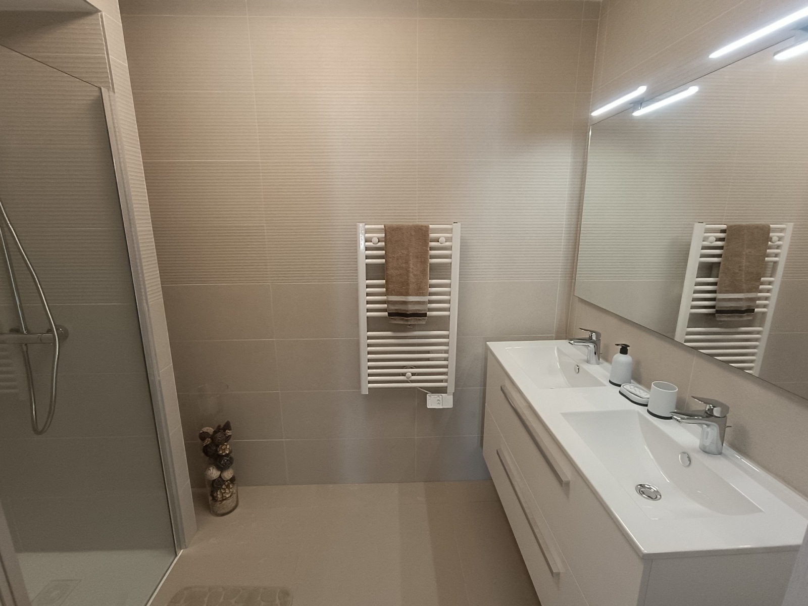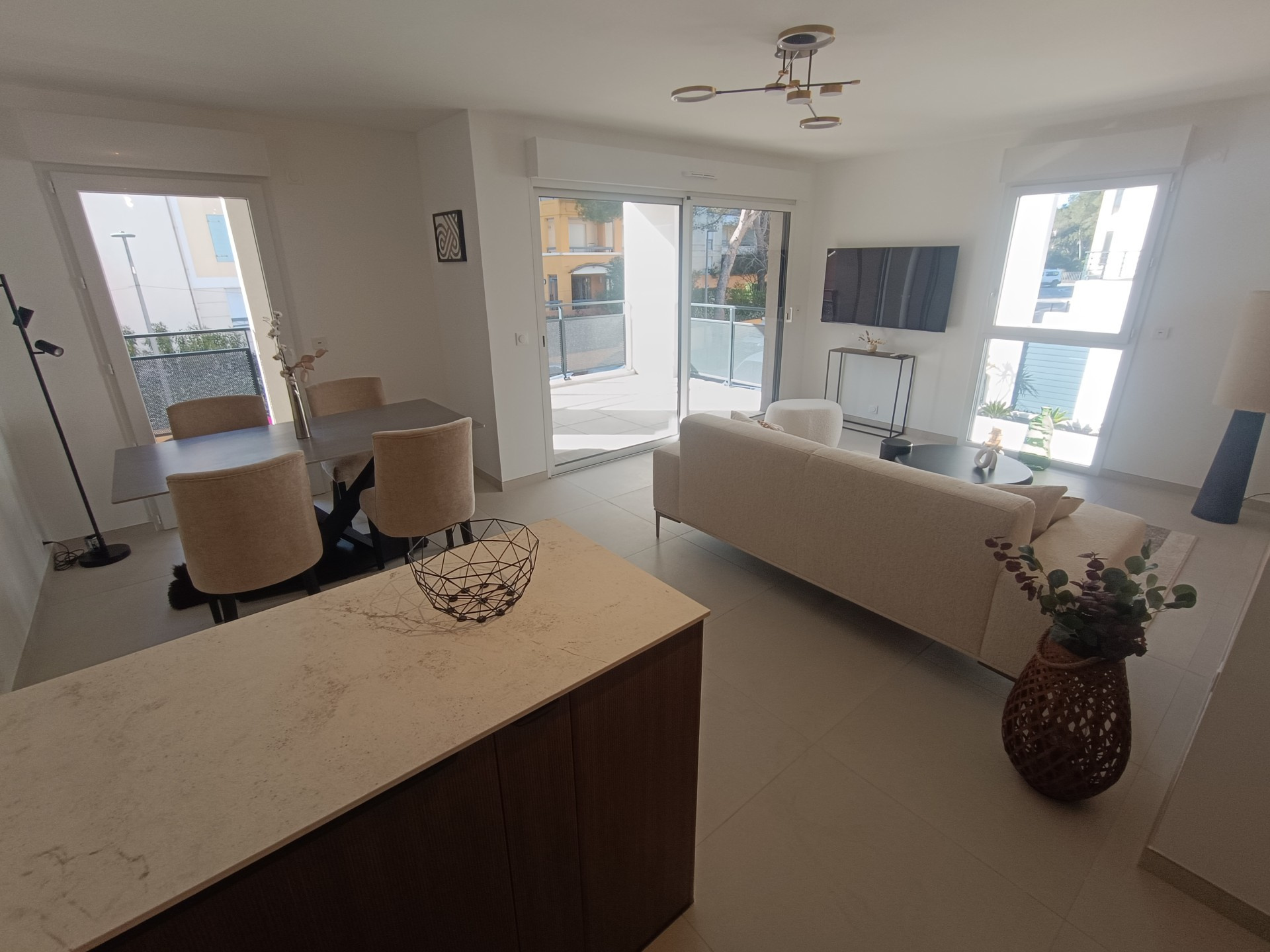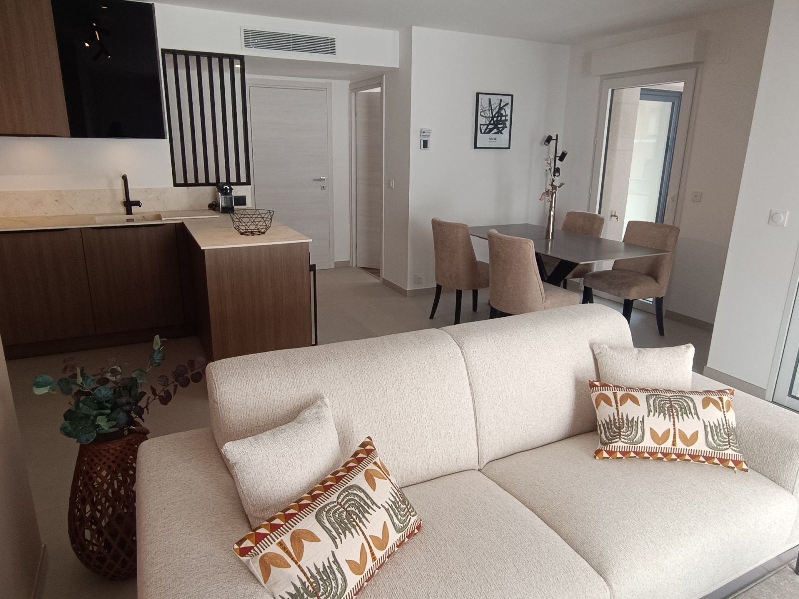 l'appartement est équipé en climatisation et bénéficie de belles prestations de fintions, materiaux de qualité.