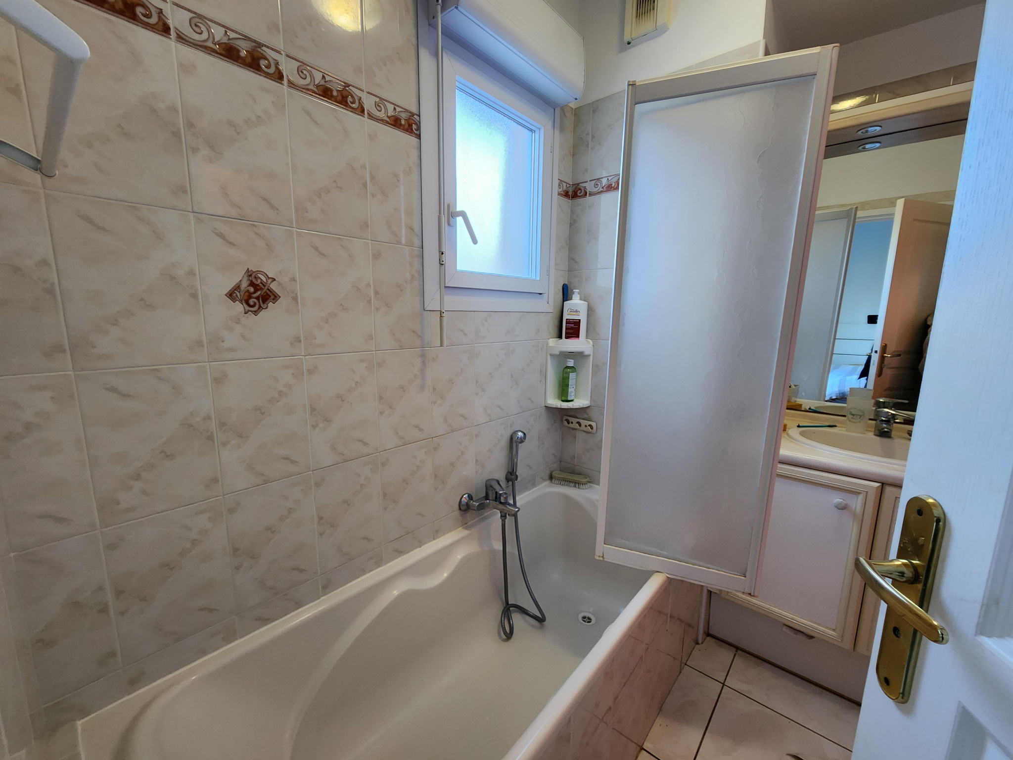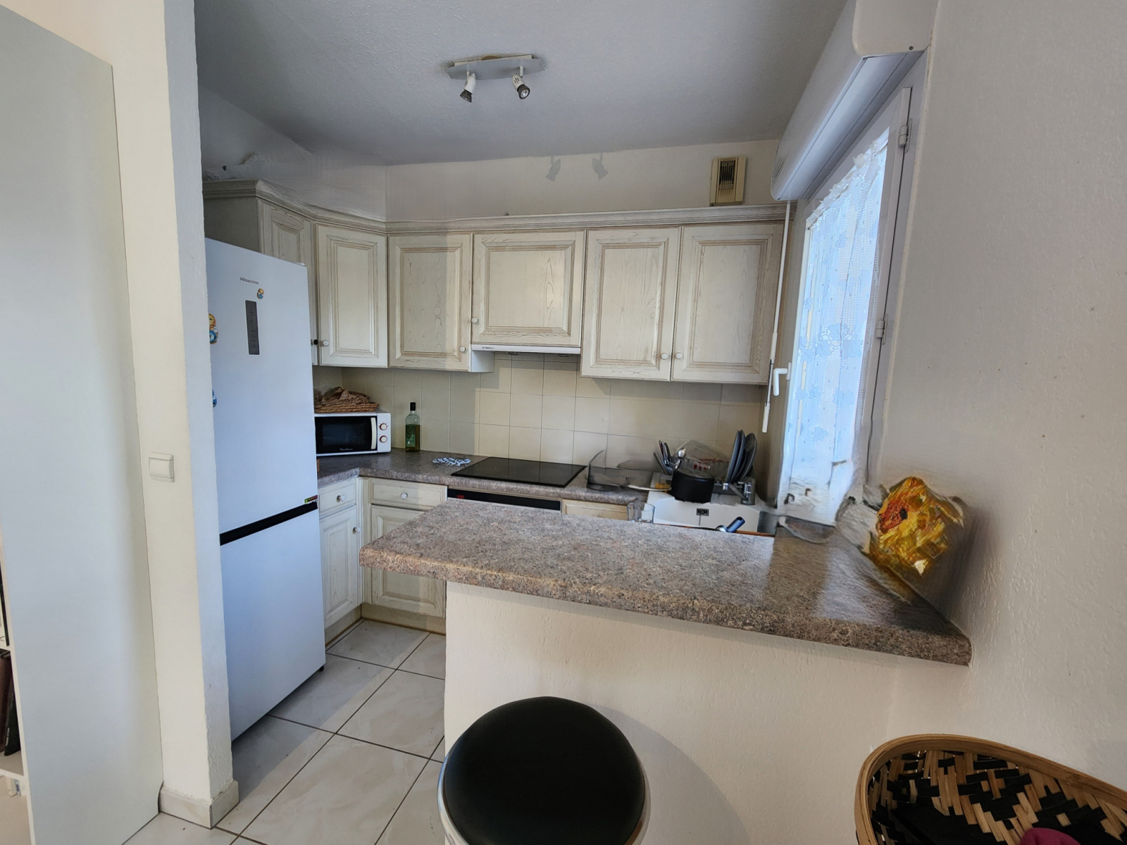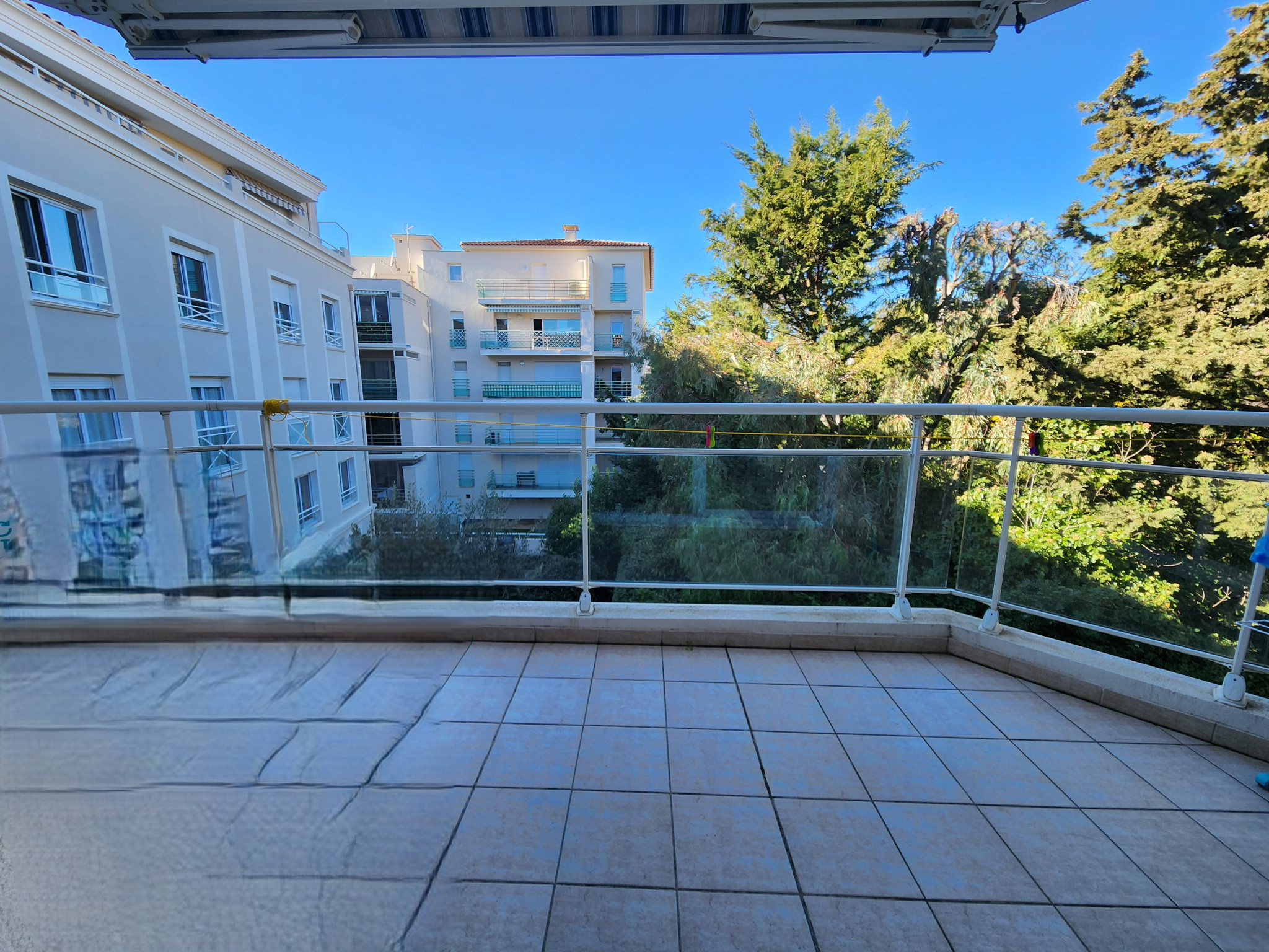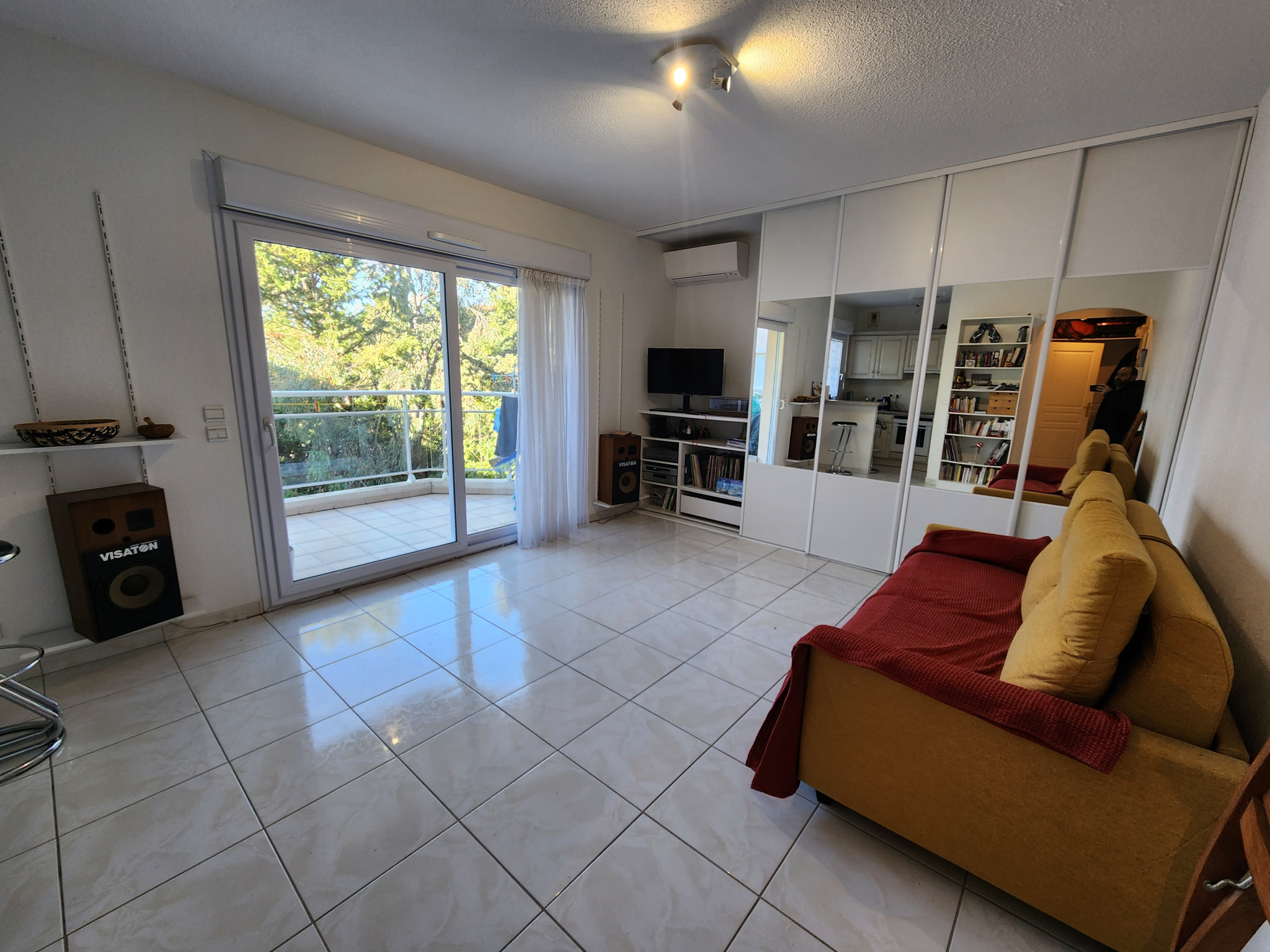 Le bien offre un séjour lumineux climatisé avec cuisine ouverte, prolongé par une superbe terrasse de 12 m², véritable espace de détente.