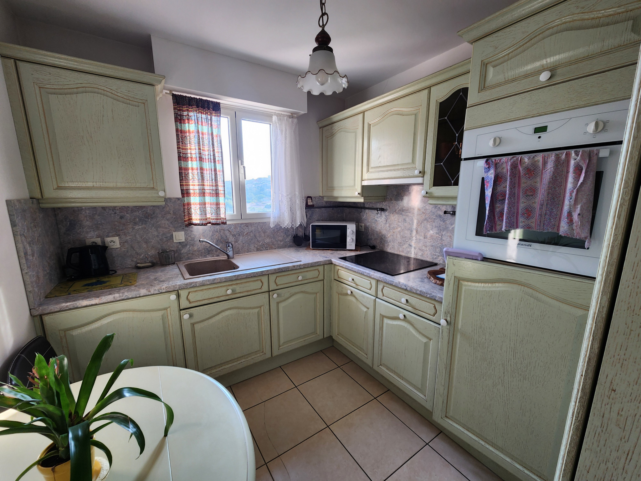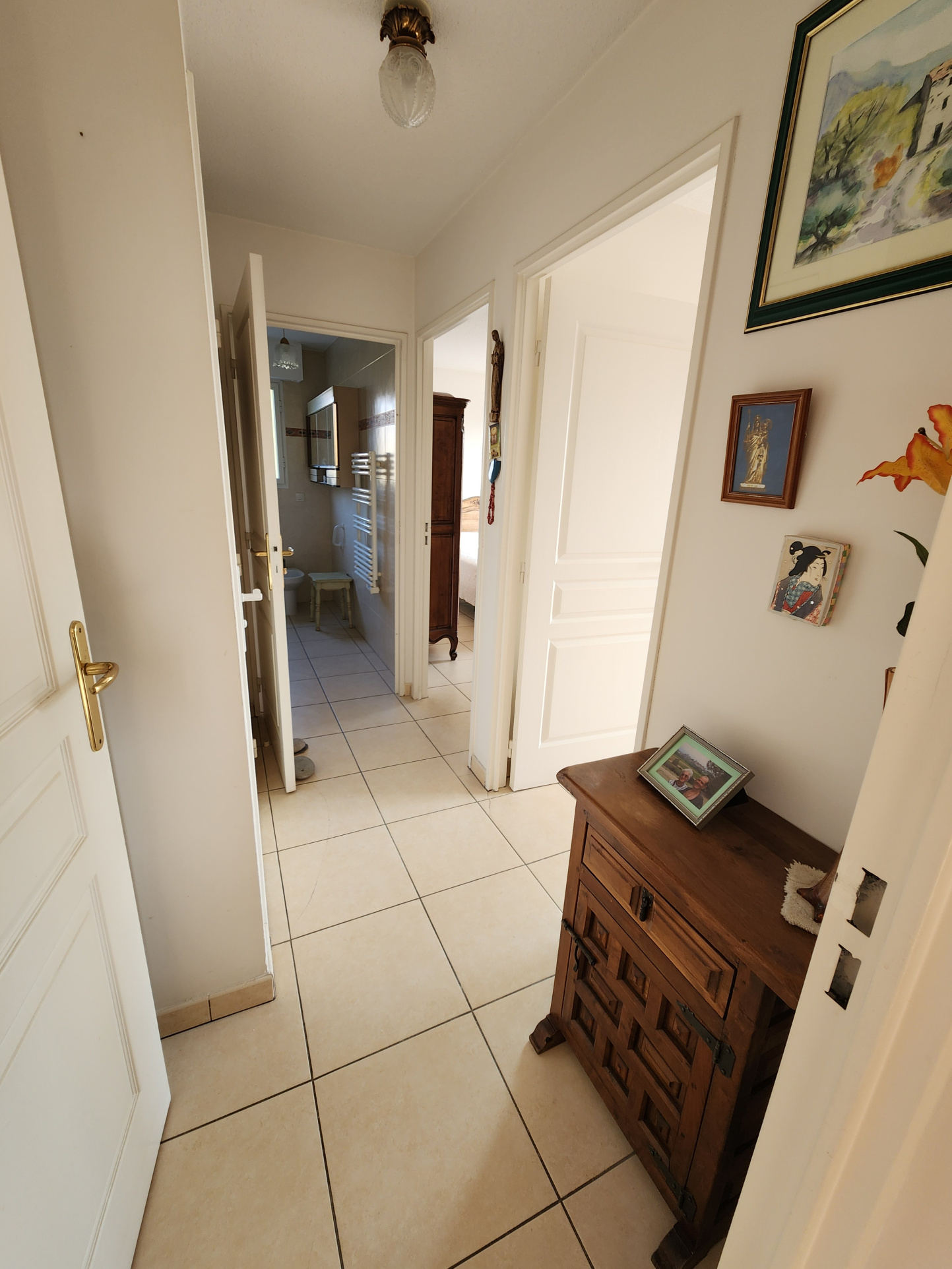 La cuisine équipée, les deux chambres avec rangements intégrés, la salle de douche et les WC séparés assurent un confort de vie optimal. Double vitrage, volets roulants électriques.