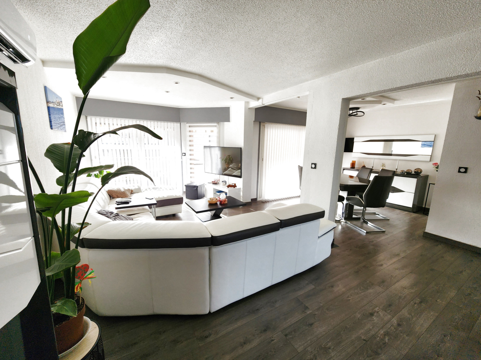 Idéalement situé au cœur du centre-ville de Saint-Raphaël, ce superbe appartement T3 traversant de 79 m², en étage élevé avec ascenseur privatif, séduit par ses volumes et sa luminosité. Il s’ouvre sur une agréable terrasse plein sud de 20 m², parfaite pour profiter pleinement de l’ensoleillement. L’espace de vie propose un vaste séjour baigné de lumière, prolongé par une cuisine ouverte entièrement équipée. L’espace nuit comprend deux chambres, dont une suite parentale avec salle de douche attenante, ainsi qu’un WC indépendant. Un parking privé dans une cour intérieure sécurisée et une cave viennent compléter ce bien rare en centre-ville.