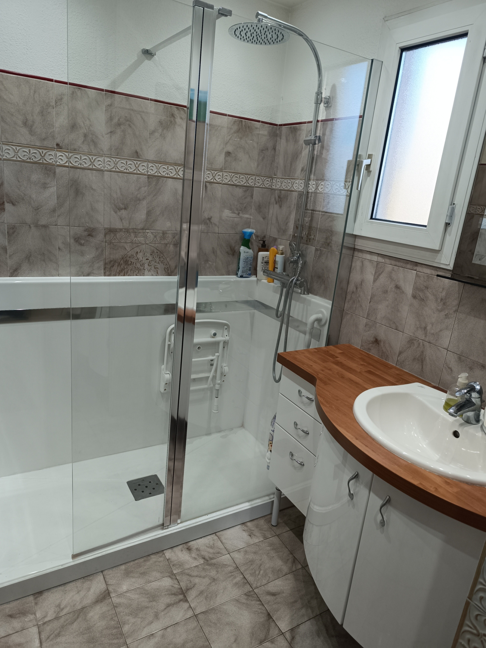 iil se compose d'un espace de vie lumineux ouvrant sur un première terrasse ensoleillée, salle a manger avec cuisine ouverte, 3 chambres de plain pied, wc et salle de douche.