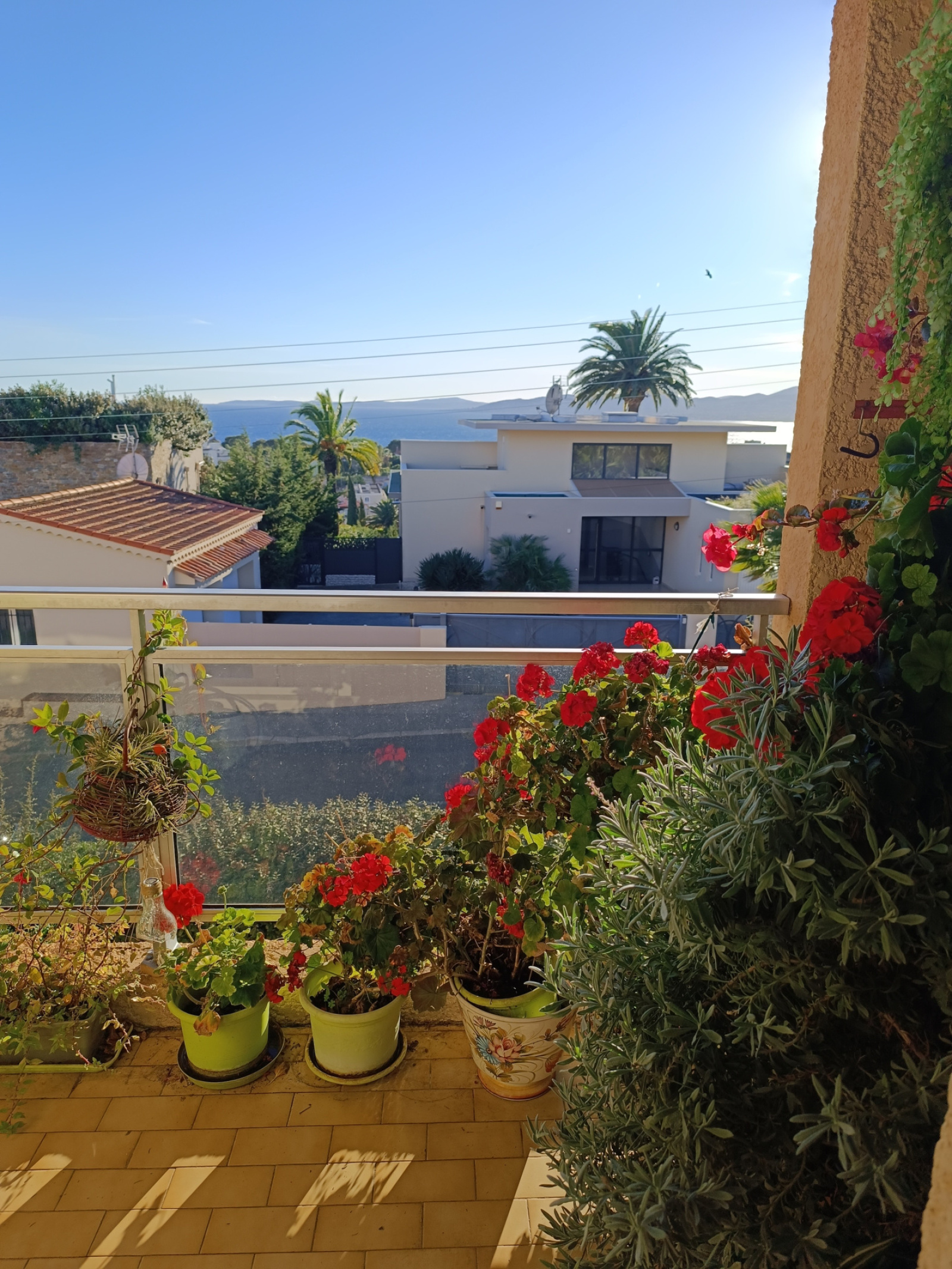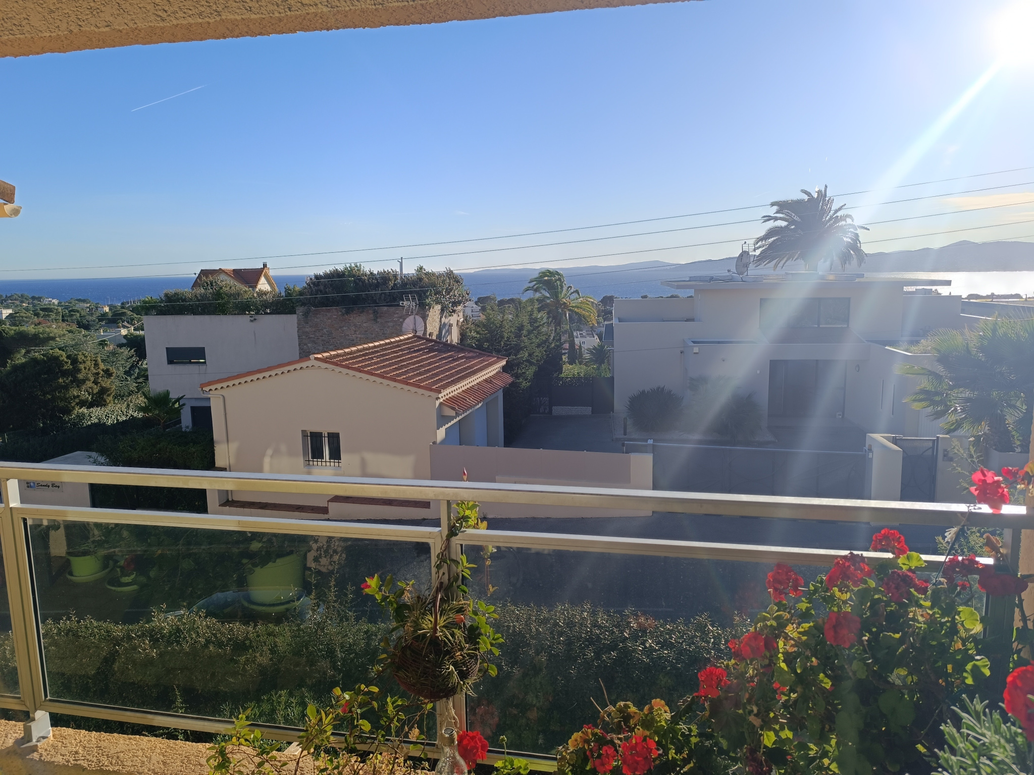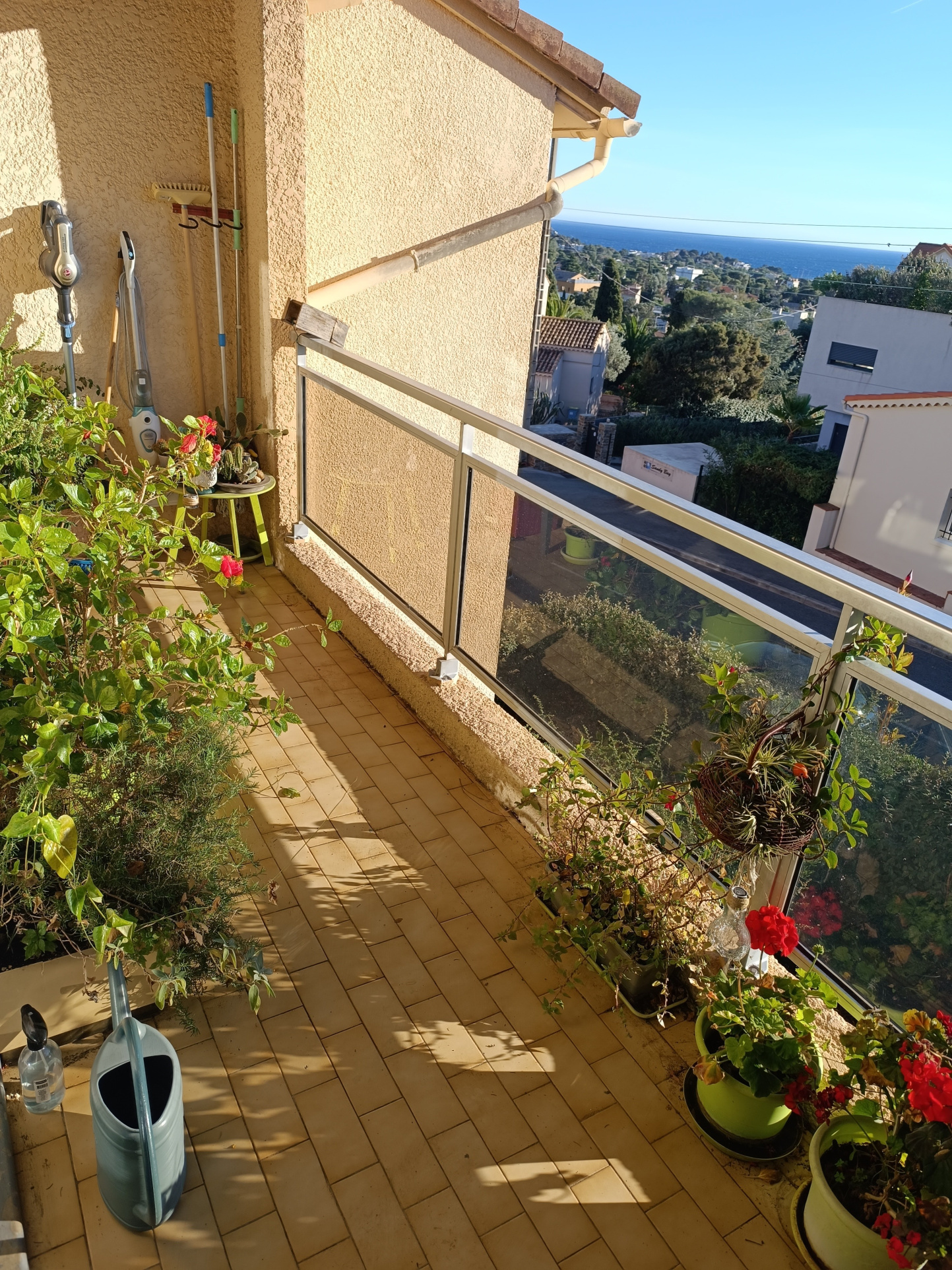 A l'étage une grande piece de vie avec w et salle d'eau et une magnifique terrasse ensoleillée avec vue panoramique sur la mer.