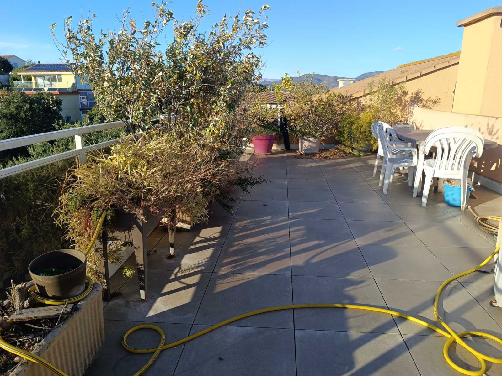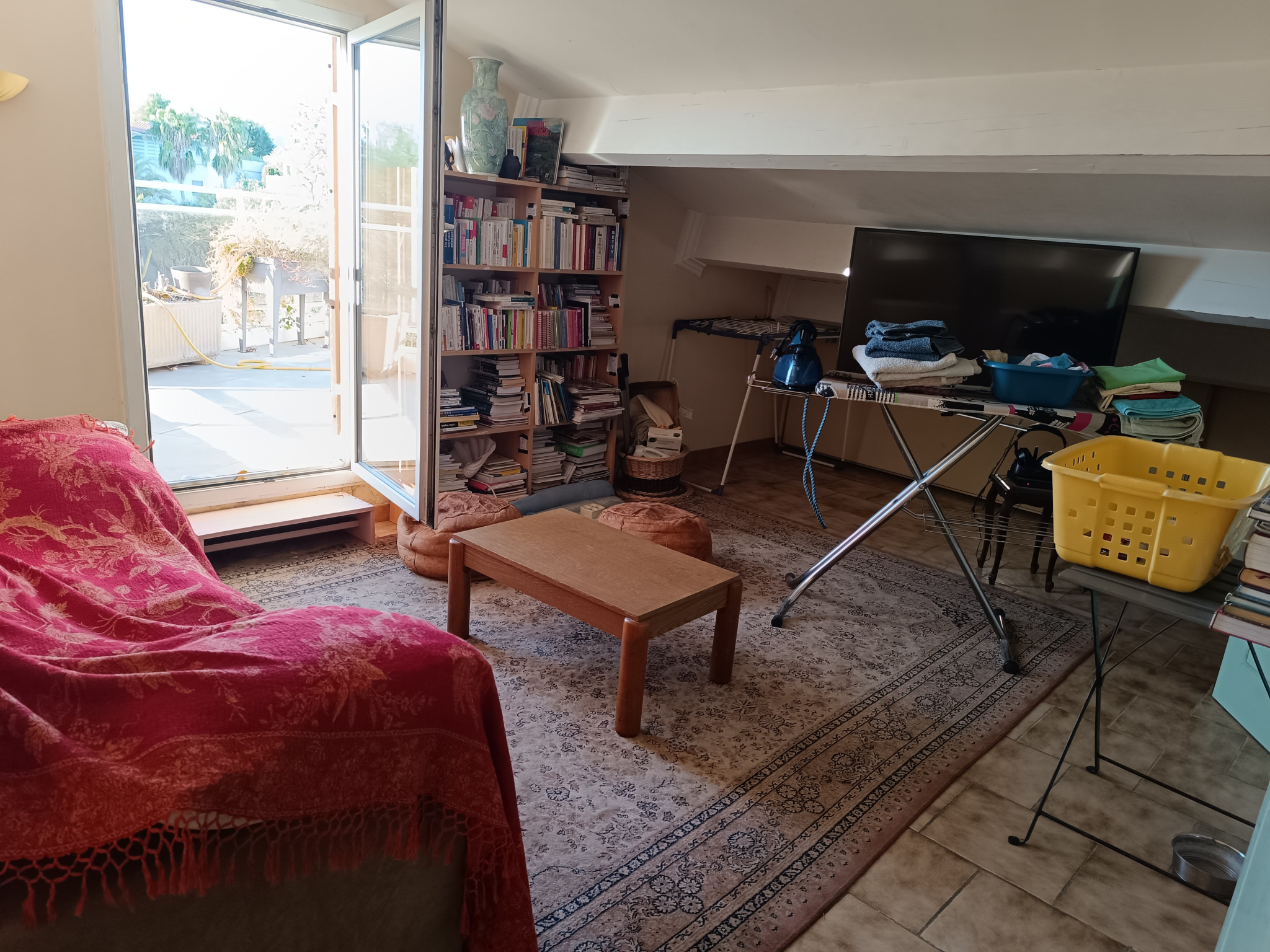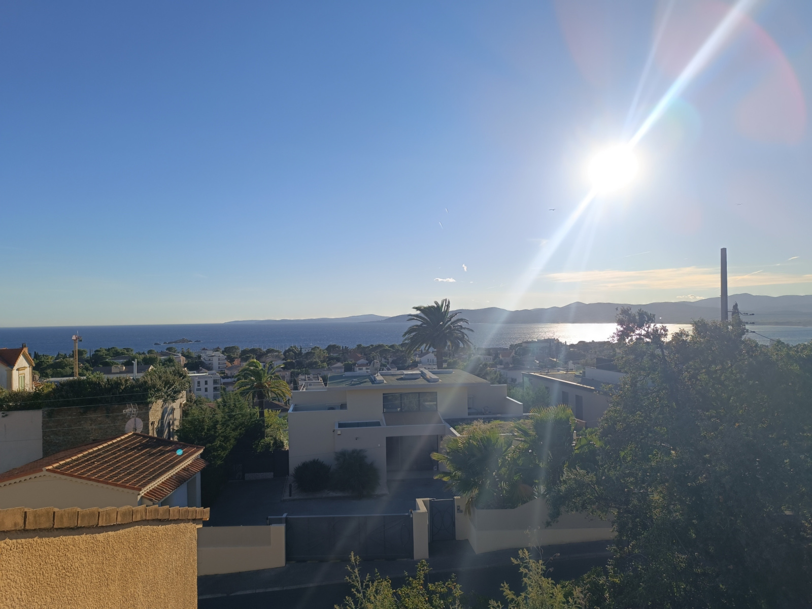 A l'étage une grande piece de vie avec w et salle d'eau et une magnifique terrasse ensoleillée avec vue panoramique sur la mer.